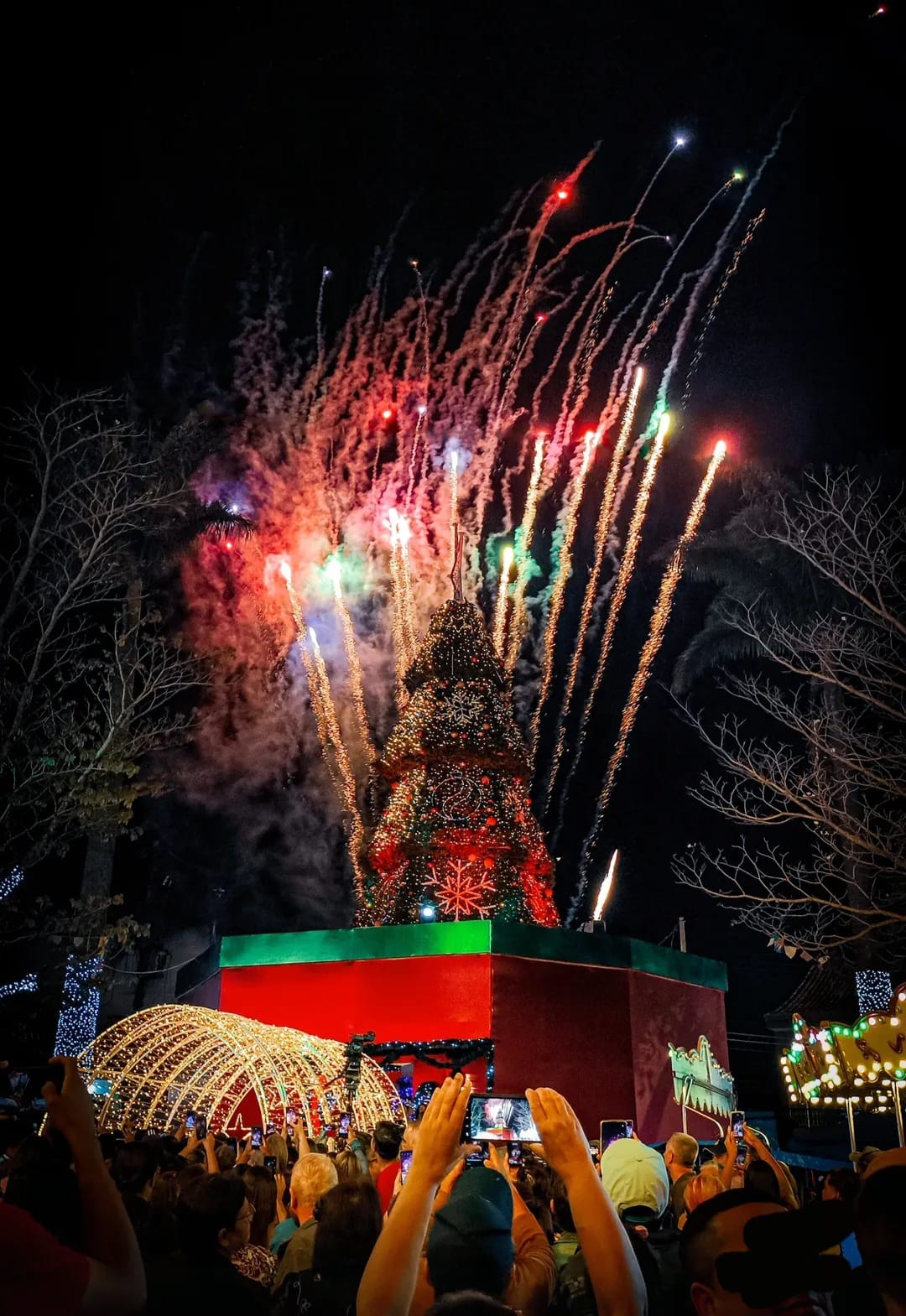 Um dos momentos mais aguardados da noite foi o acender das luzes, que iluminou toda a praça e arrancou aplausos do público. Em seguida, os fogos de artifício completaram a celebração, dando ainda mais brilho ao evento e emocionando moradores de todas as idades.