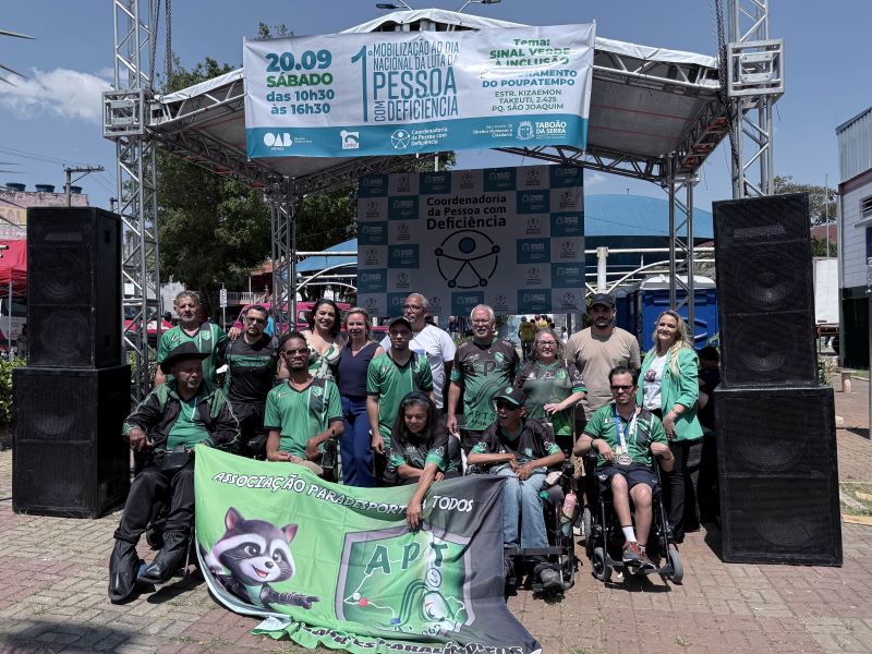 Em alusão ao Dia Nacional de Luta da Pessoa com Deficiência, celebrado em 21 de setembro, a Secretaria de Direitos Humanos e Cidadania de Taboão da Serra, por meio da Coordenadoria da Pessoa com Deficiência, promoveu no último sábado (20) a 1ª Mobilização “Sinal Verde à Inclusão”. O evento, realizado no estacionamento do Poupatempo, reuniu autoridades, profissionais, entidades e a população em um dia de reflexão, serviços sociais gratuitos e atividades culturais.